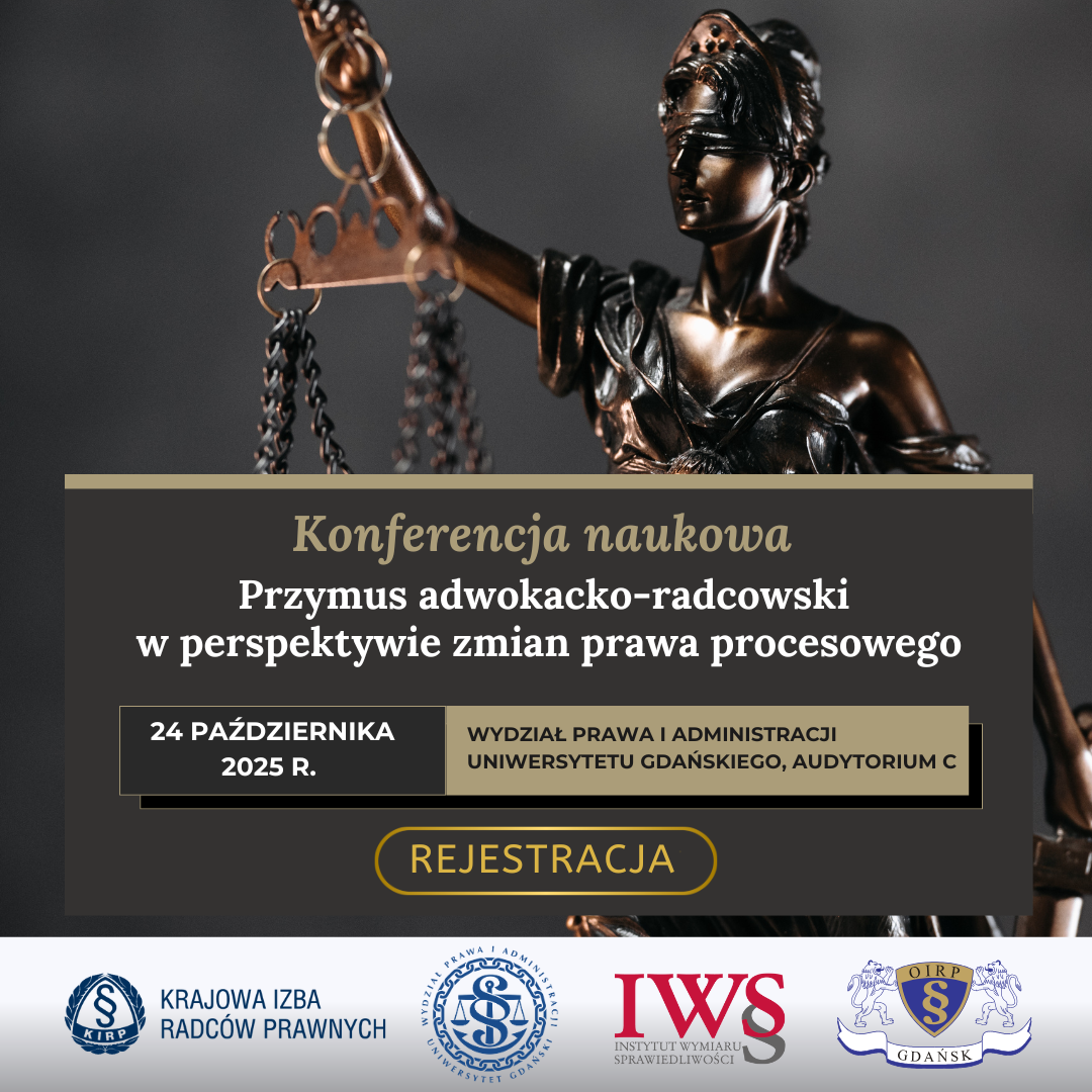 Szanowni Państwo, zapraszamy na nadchodzącą konferencję „Przymus adwokacko-radcowski wobec wyzwań współczesnego prawa procesowego”, która odbędzie się 24 października 2025 r. w Gdańsku, w Audytorium C Wydziału Prawa i Administracji Uniwersytetu Gdańskiego przy ul. Bażyńskiego 6. Początek obrad – godz. 10:00. Konferencja organizowana jest przez Krajową Izbę Radców Prawnych, Instytut Wymiaru […]